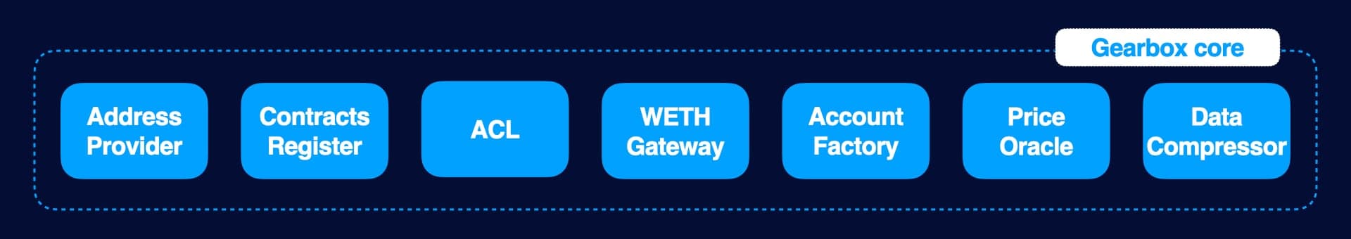 Core contracts provide functionality necessary to interact with the protocol, including contract discovery, price feeds, access control, etc.